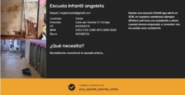 Por petición de una profesora de español de Valencia para ayudar a la recontrucción de la Escuela Ingantil Angelets, destrozada por la DANA.
